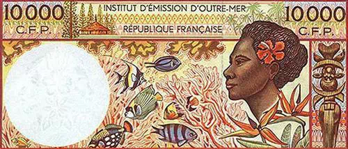 法属的新喀里多尼亚、法属波利尼西亚、瓦利斯群岛和富图纳群岛拥有丰富的物产与优美的风景,当地居民的生活方式趋于悠闲。于是这里的一万法郎纸币也就非常具有地域风格。有姑娘,有鱼;有村子,有花。就颜值来说,你还想对纸币有什么更高的期望呢?
