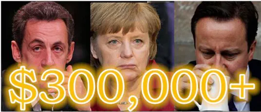 欧盟各国领导人的薪金大致与国力相符,法国总统萨科齐年薪34.6万美元;德国总理默克尔年薪31.8万美元,英国首相卡梅伦年薪34.7万美元,稍高一点,但根据BBC披露,在公立机构中共有9187人的收入超过卡梅伦。不过,英国首相若政绩显赫,可得到王世授予的爵位。退休后,也可以领到首相工资的75%作为退休金。