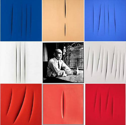 卢齐欧·封塔纳作品代表作是各种“被割破的画布”,这些作品有些还是当众创作的。