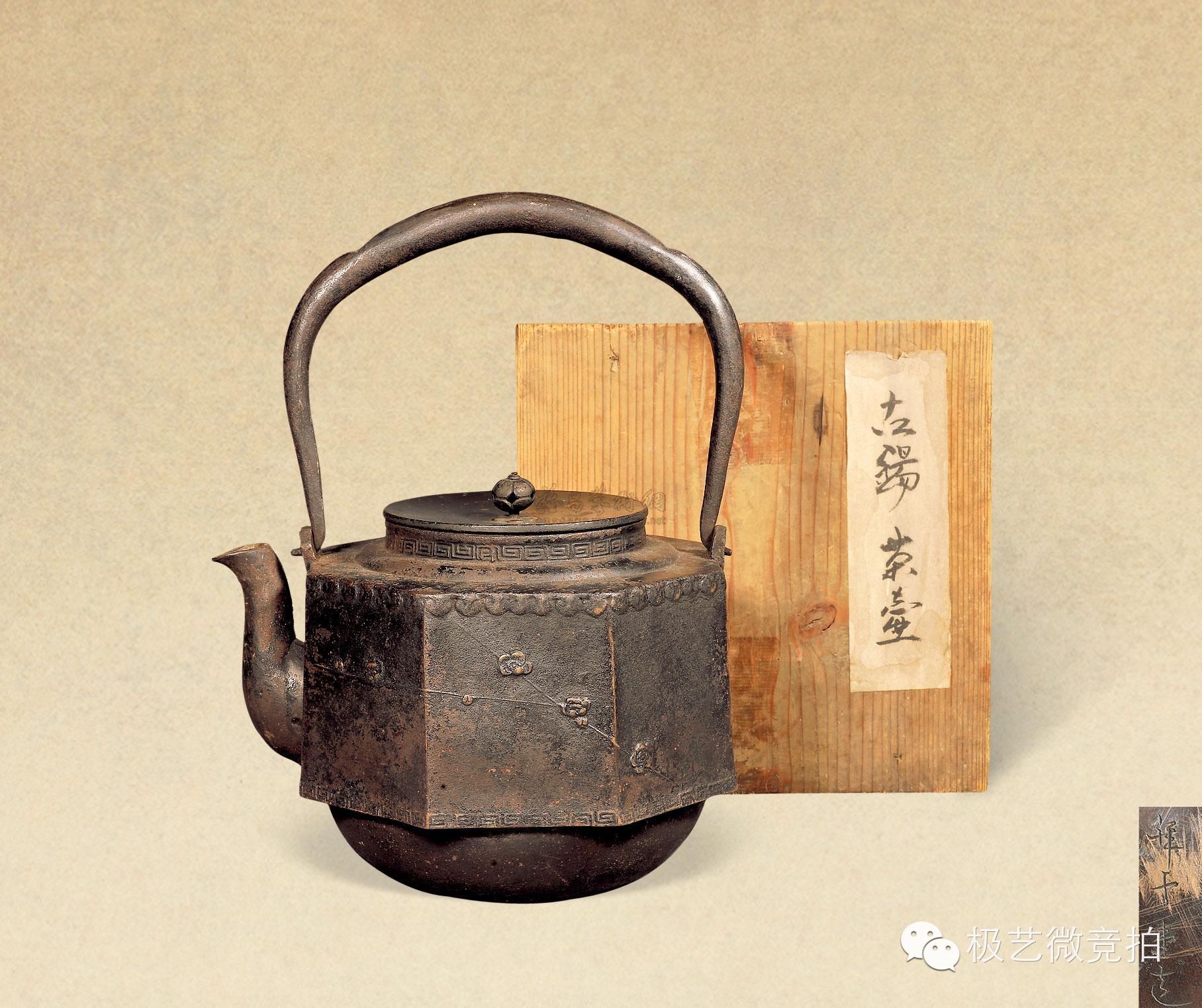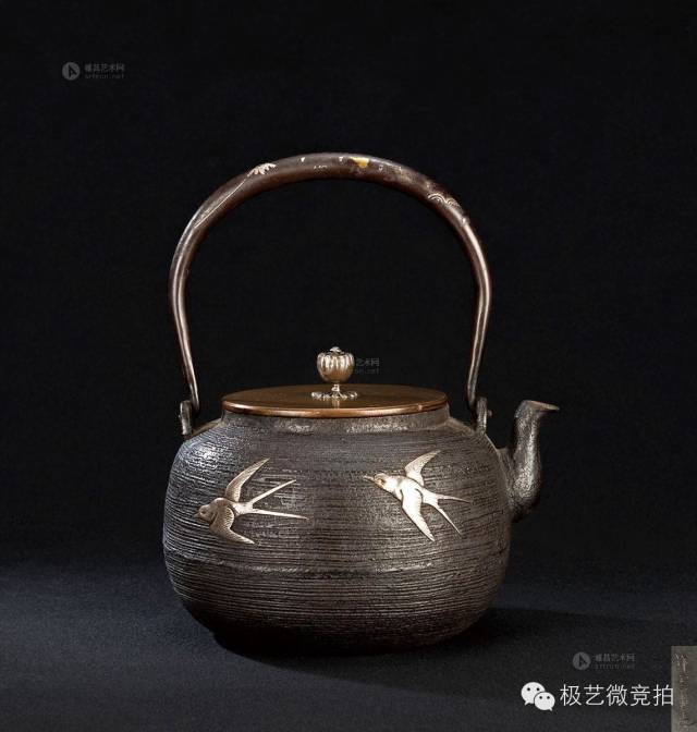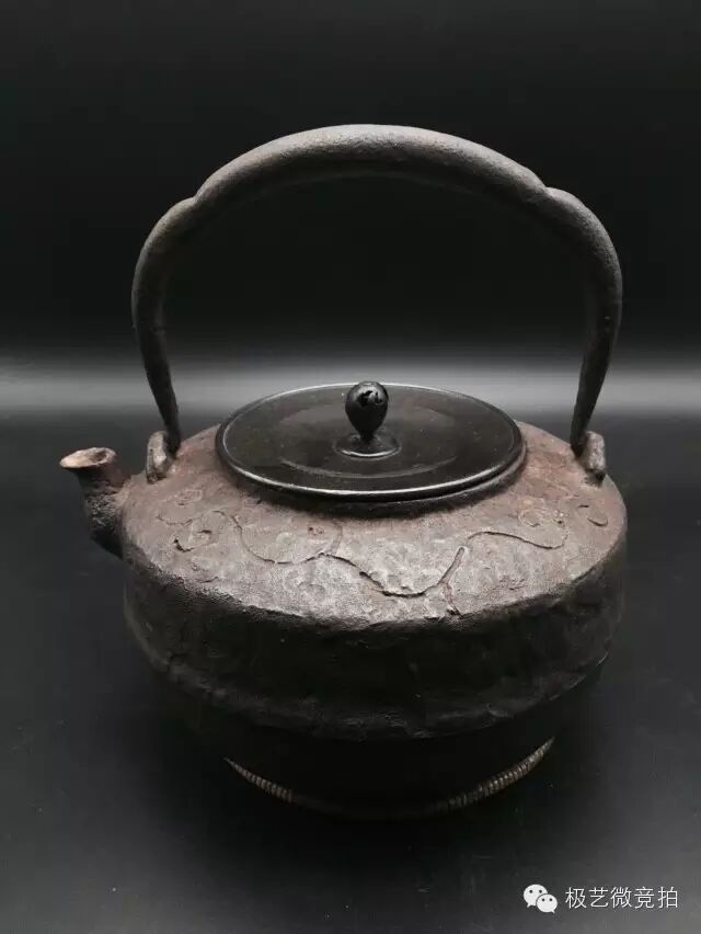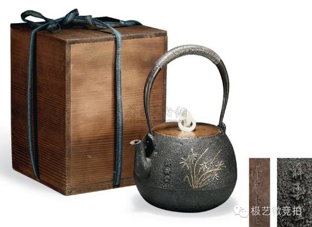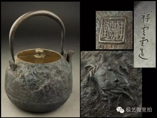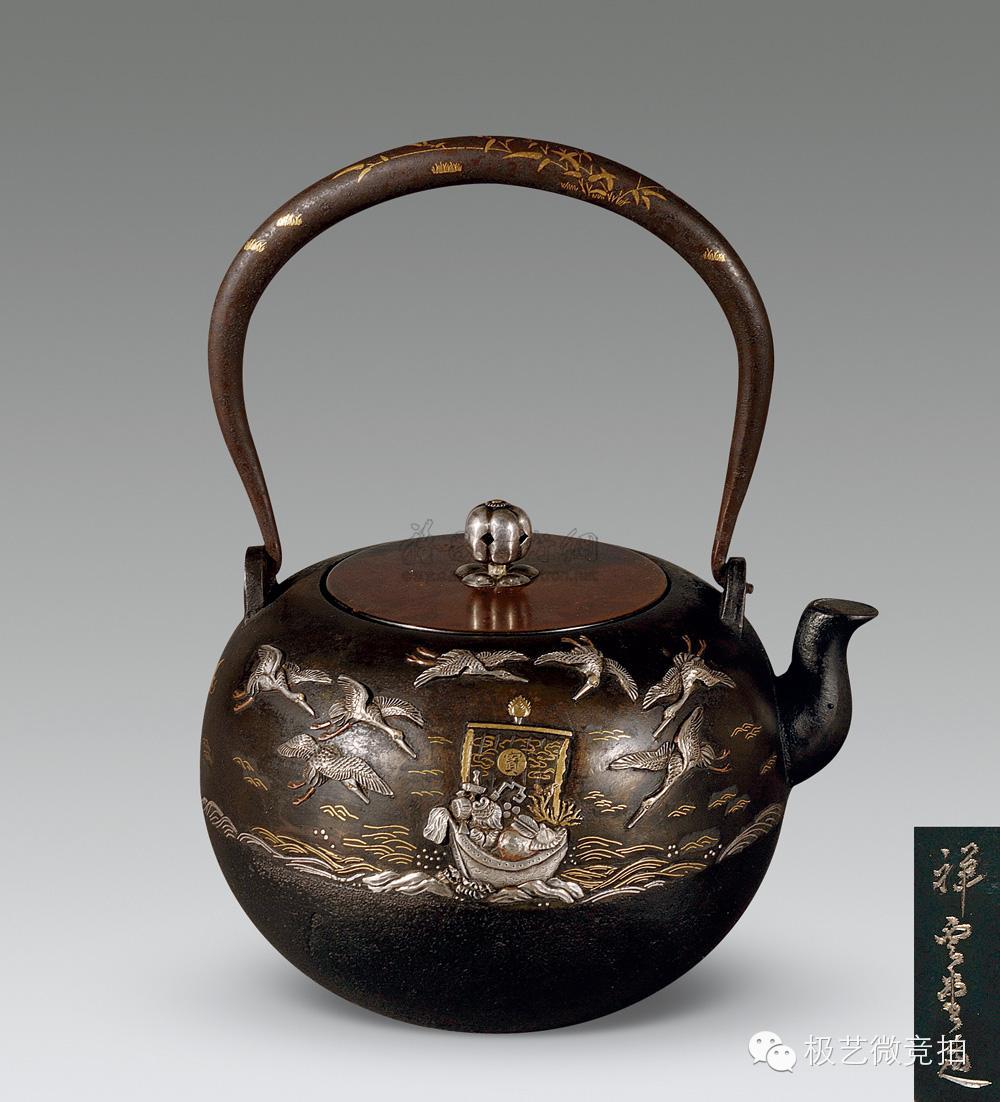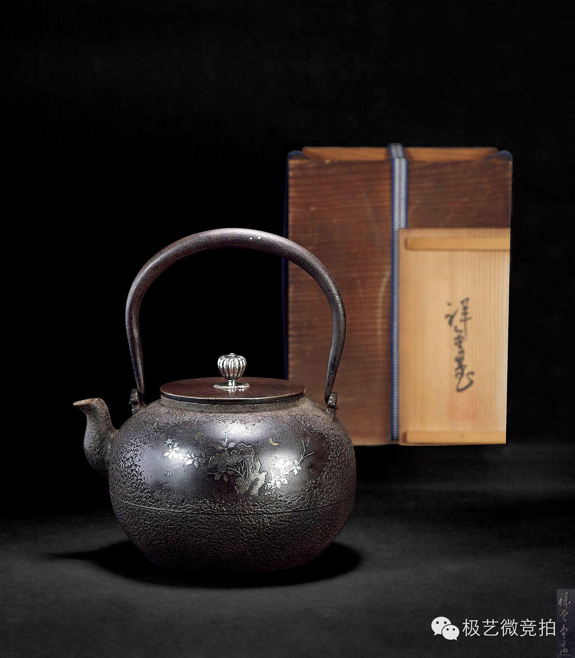 http://mmbiz.qpic.cn/mmbiz/9VJiadml5CZlLl6XmYqdI4J3LYpPSQXSsaxO1UvbCYAsk2SBx5PQ6tUtovdSyYwAFjdicQJAwnORbfLckowj13WQ/0?wxfrom=5说明:祥云堂为明治到大正时期京都铁瓶知名堂号,壶身减地施以金银镶崁花卉彩蝶,斑朱铜盖搭配纯银菊瓣形摘钮,呈现富丽堂皇之姿,乃当时高端订制壶品,保存良好原供箱俱在,殊为难得!