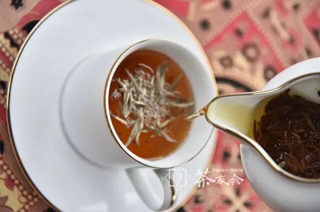 不过,最初时白茶在英式下午茶中更多是扮演了香型拼配的角色。他们比较喜欢将白茶作为香型拼入他们爱喝的红茶中。而这一风潮始于维多利亚时代,一直持续至今。而其中最有名的轶事莫过于伊丽莎白二世调制的“红衣丽人”,它将白毫银针放入红茶汤中,成就了一款绝妙无比的茶品。