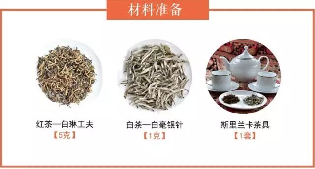 1.按正常泡法,冲泡白琳工夫;2.将白毫银针直接洒在泡好的白琳工夫红茶茶汤中;3.直接品饮。