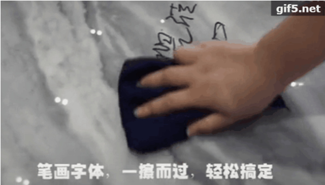 首先,我们用抹布擦拭,涂写在产品表面的文字,可以发现一擦即净。