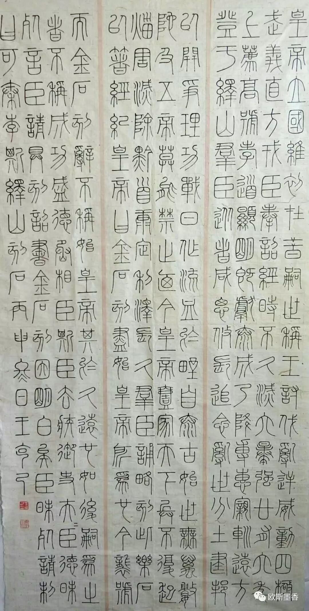 平时的书写练习中,我喜欢写铁线篆,也创作了很多作品