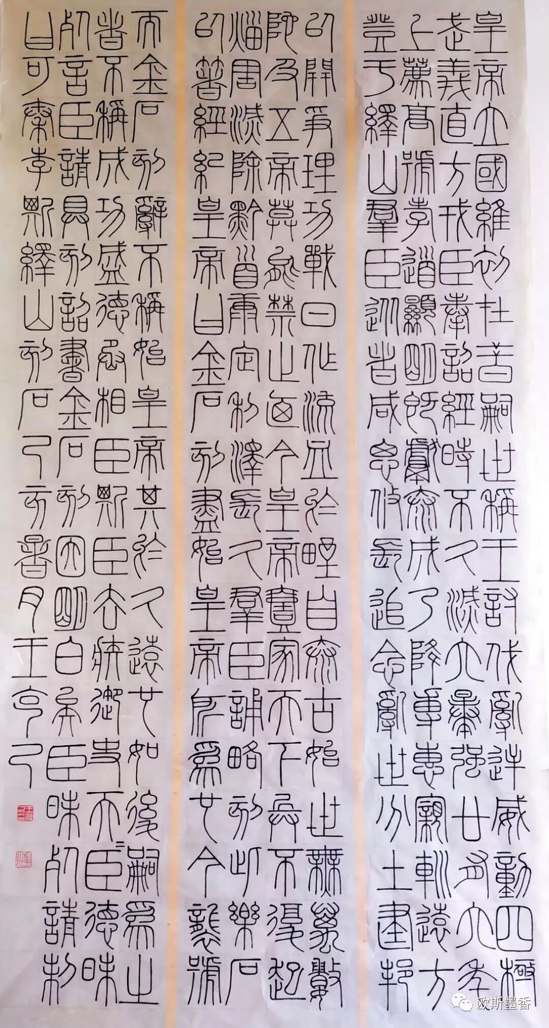 山碑的临写,就是创作铁线篆的基础,只有写好峄山碑才能创作铁线篆作品,这就必须深入研究《 峄