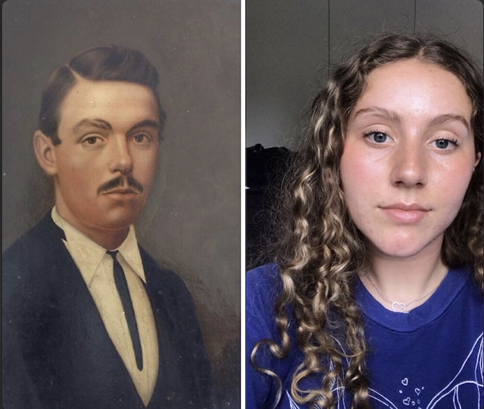 妹子找到了N年前的祖先画像,发现自己右眉上的那一道空白和祖先一模一样…
