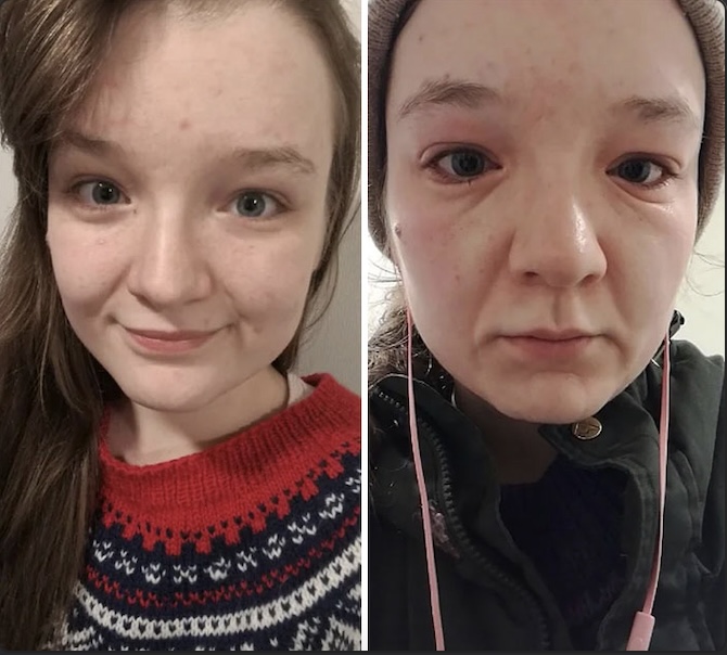 妹子说她天生皮肤对寒冷过敏,一到冬天就冻成了“老人脸”…
