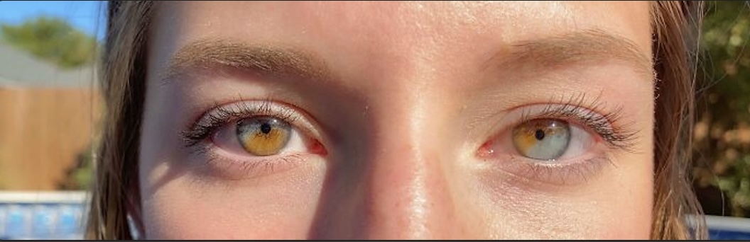 这位妹子患有部分虹膜异色症,双眼各有两种颜色。