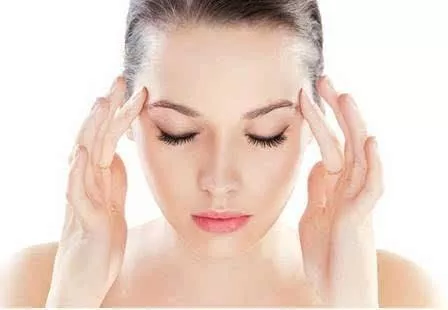 4. 揉太阳穴:两手掌放在两侧头颞部、眉梢与眼角连线中点的凹陷处太阳穴,顺时针揉动约半分钟,然后再逆时针揉动半分钟。