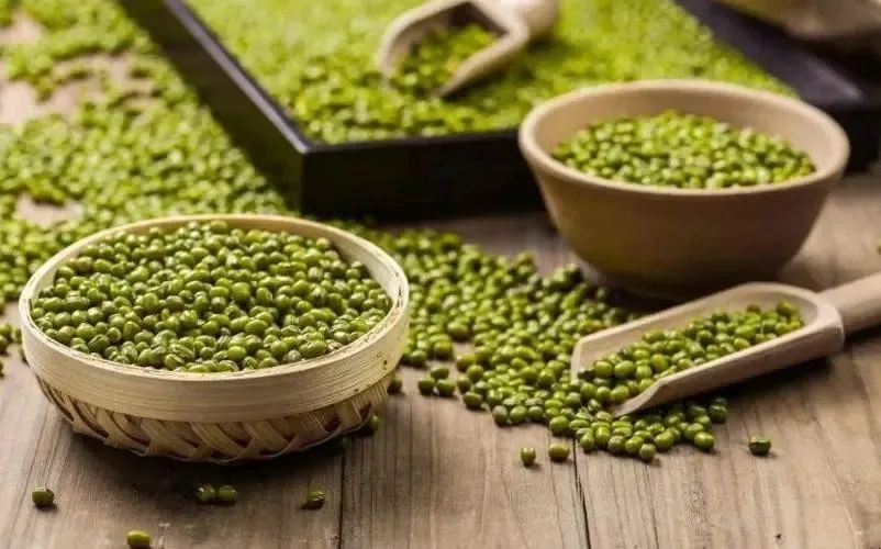 绿豆之名出自《本草纲目》,“绿豆圆小者佳。粉作饵,炙食之良”,别名青小豆。种子供食用,含蛋白质25.59%,淀粉53.6%,富于营养,磨粉可做糕饼,又可制成粉丝,为中国传统副食品之一。种子洗净浸水中遮光发芽,名绿豆芽或豆芽菜,供蔬食。种子入药,有清凉解毒、利尿明目之效。《本草纲目》记载“绿豆:甘、寒。绿豆粉:甘、凉、平。绿豆皮:甘、寒。绿豆芽:甘、平”。
