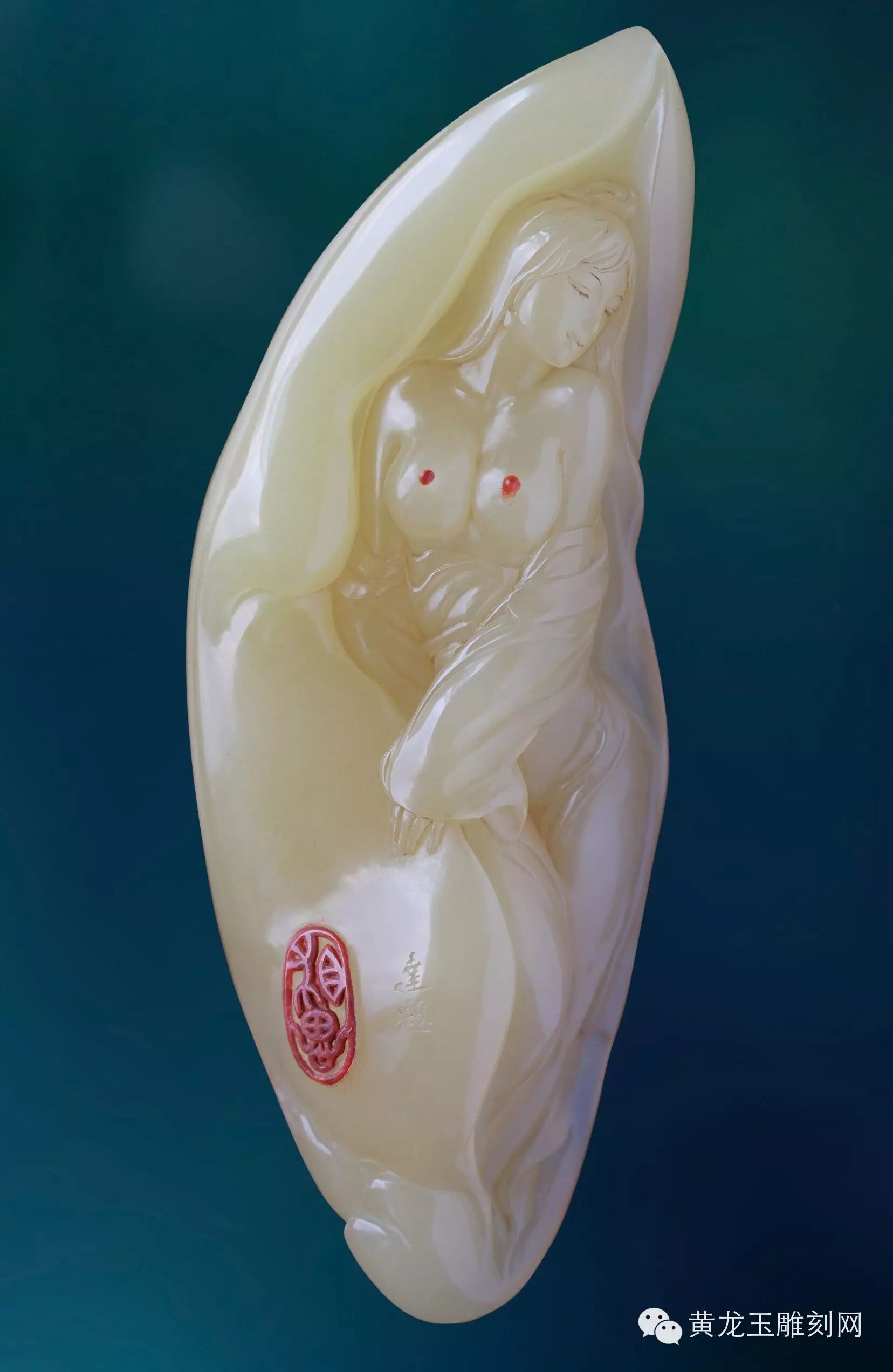当前玉界中,玉石人体雕刻独树一帜者,当以林飞、吴德升二位大师开创先河。郑继,师法其长,亦有创新。其作品造型上以装饰和写实相结合,形体夸张流畅,强调俏色运用;在意境上注重人体的灵欲相生,在唯美的前提下,呈现人性的真实情感。以“空色美人”为风格立意,逐渐形成了属于自己且风格鲜明的人体作品。