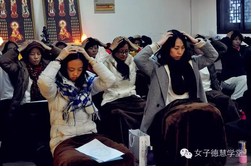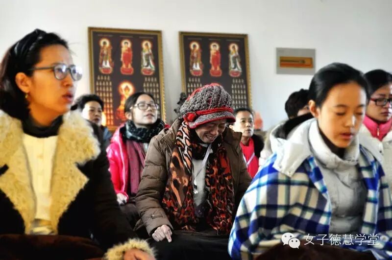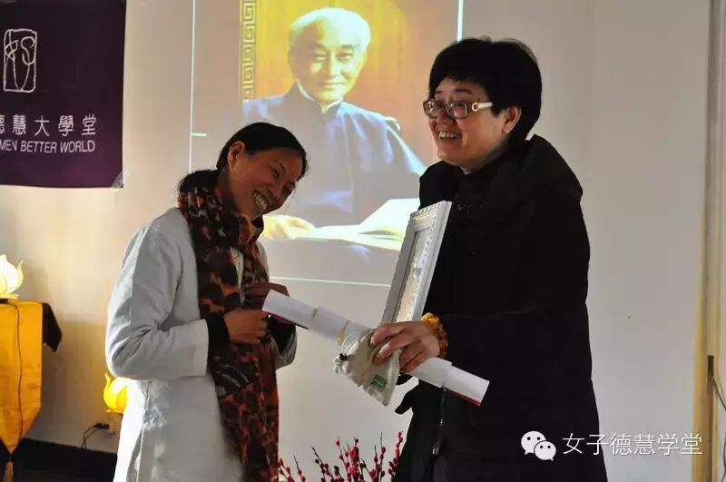 晚上,开课了。大家全体起立,给南老师行问讯礼,接着看德慧宣传片,屏幕上百岁老人的声音一下揪紧了我的心,以至后来我只记得校长柔柔地讲话,说的什么内容我却迷糊了。同学们作自我介绍时,看到一个女人,抱着校长又哭又笑傻里傻气,那就是我呀! “平常一样窗前月,才有梅花便不同。”多少次梦里的寻找,那颗飘泊不安的心,終于遇见女子德慧大學堂,皈依在王紅校长那柔软的音声和温暖的怀抱里……