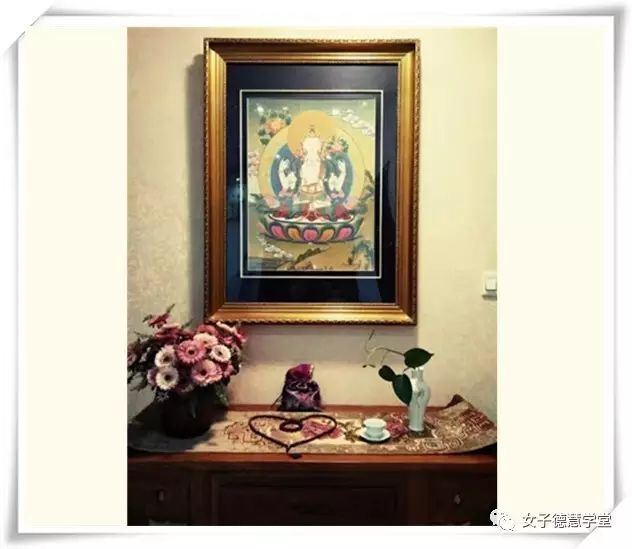 “有时候先生也喜欢站在唐卡前默默的看几分钟,双手合十,虽然不知道他跟唐卡说了什么,但是家里的气场就不一样了。连那盏灯,每次回家或半夜醒来,都足以让我感觉安全、安定、祥和、幸福。一切仿佛都有加持的力量。”
