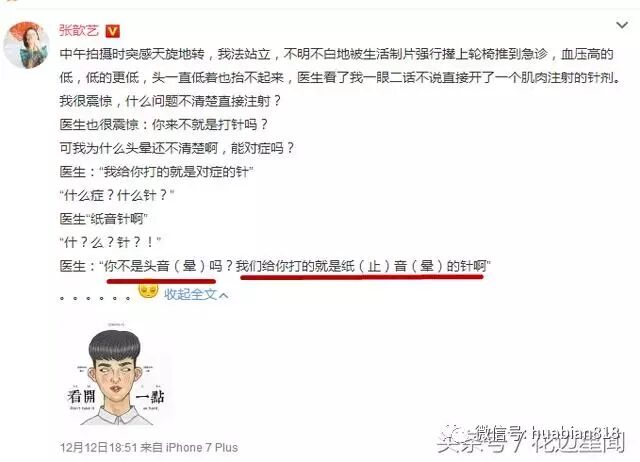 昨天张歆艺更博称自己头晕急诊时,遇医生不问情况直接打止晕针,倍感无奈。微博发出后,引网友热议: