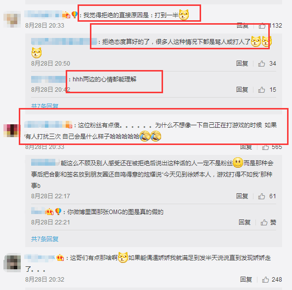 有人表示理解觉得游戏打到一半这个态度已经算可以了,但是也有人认为徐娇耍大牌,有人认识要签名就不错了还这个态度!