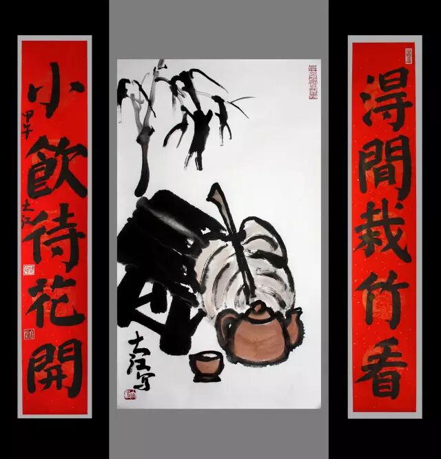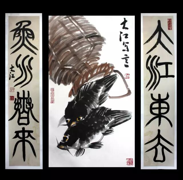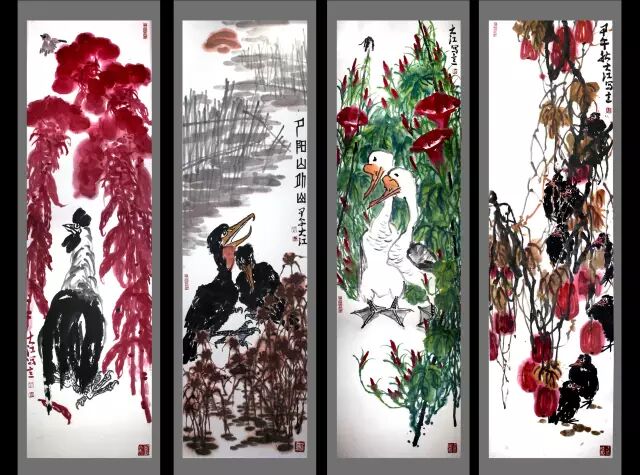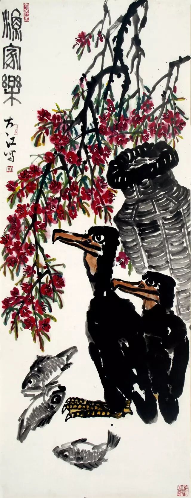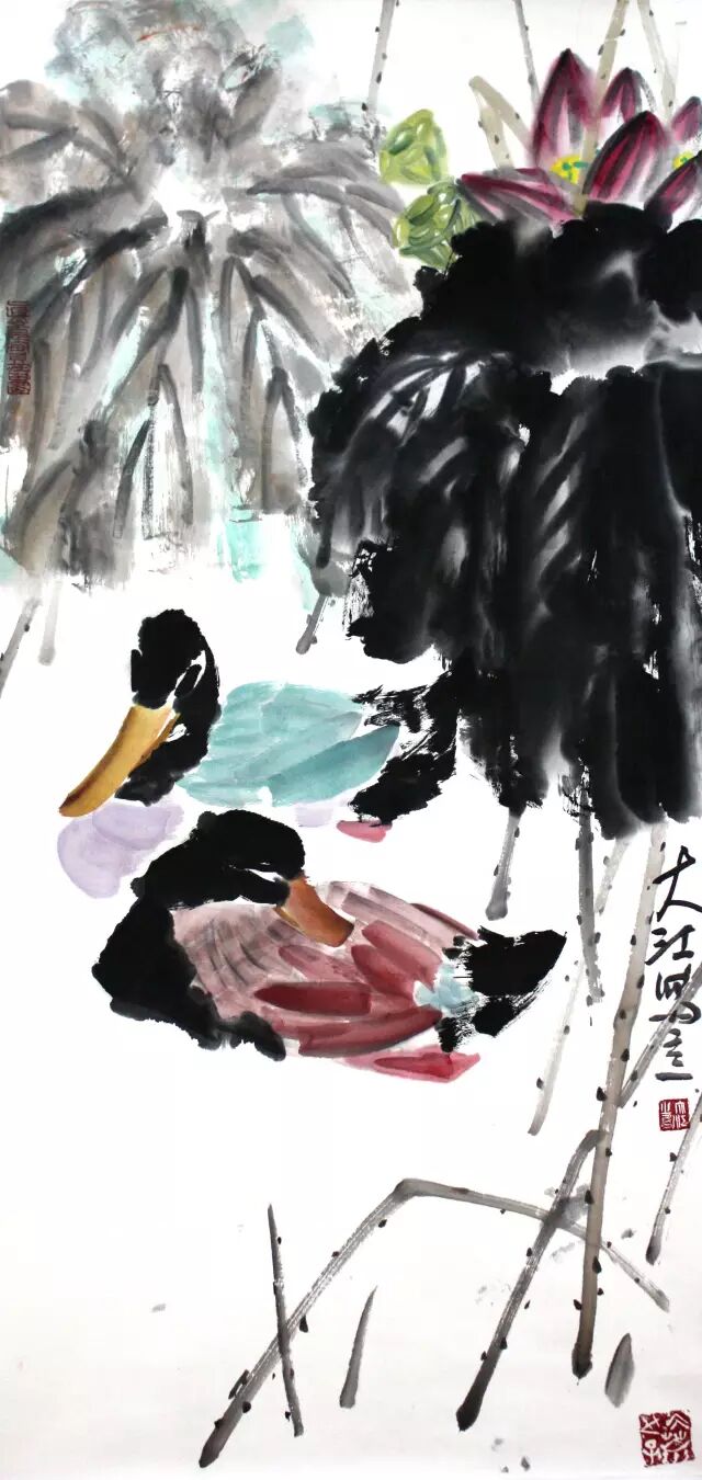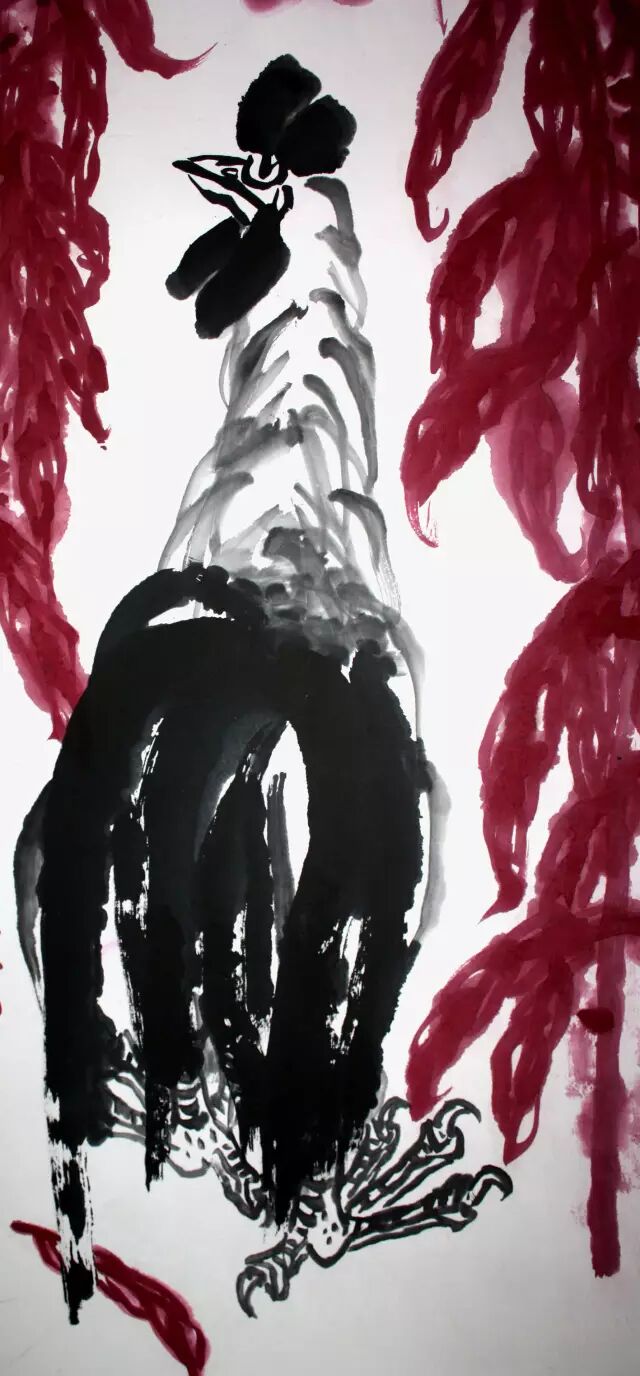 在齐白石老先生的画中,就曾感怀于他那文人笔墨的隽永与市井中直白坦荡的色彩之间的大胆结合,再以最纯朴的生活素材为对象,表现出画家在“巧”与“拙”之间的量度。虽不能将大江的作品与之较短长,但能在其中找到某些相似性,这正是他对前人继承的修炼。继承是为了更好的创新,他在数年辛勤的笔墨耕耘中,锤炼出自己的独特语言:以文人笔墨的透彻结合民间年画的纯朴色彩,把墨与色的界限放在新的空间去度量,幻化出新的色彩,这里既有传统的精髓,又有当下思想与生活的印记。