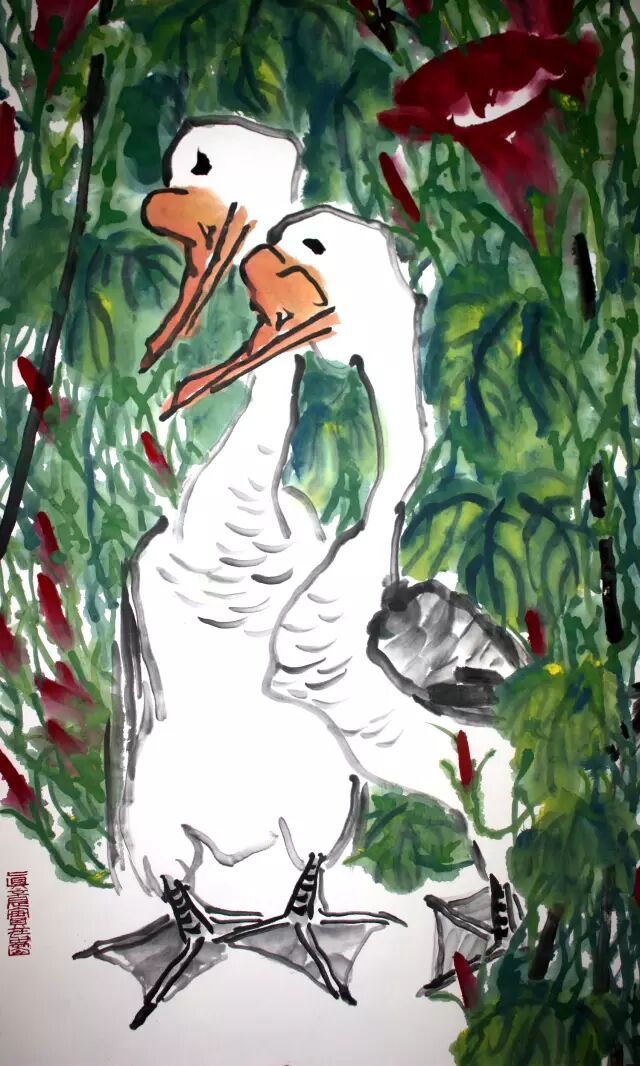 1991年求学于南京,跟随南京师范大学陆越子先生学习写意花鸟。