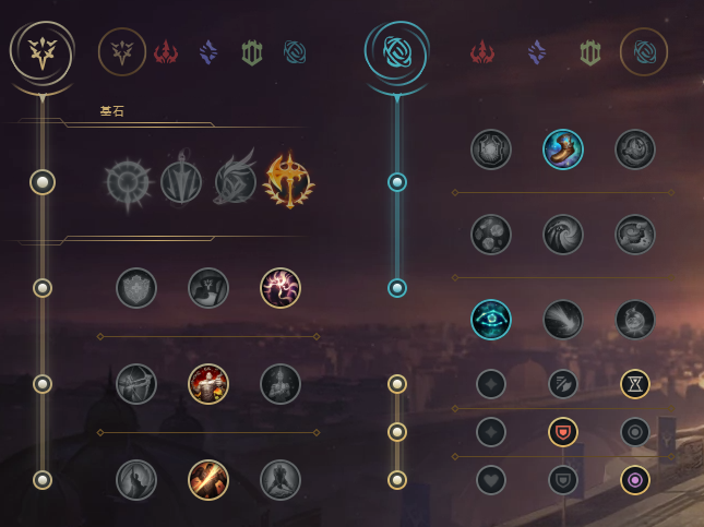 基石符文选择征服者,10.22版本狗头开启大招就能获得高额的双抗,不再那么依赖坚决系来提供坦度,所以主系换成征服者,用来打输出和回血,哪怕没有吸血装备配合被动也有恐怖的回复能力。副系点出神奇之鞋、星界洞悉,减少技能的CD。