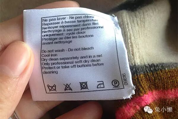 翻开所有羊绒衣物的洗水标,我们几乎都可以看到“不可水洗”和“只能干洗”之类的提示,就像这样: