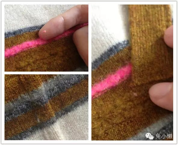 有图有真相,三个阶段,不同程度的起球(样本来自2014香奈儿达拉斯走秀系列条纹毛衣,材质100%羊绒):