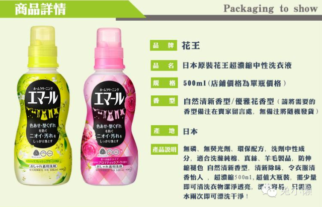 洗涤剂的话,对比过多种洗涤剂以后很推荐花王的中性洗涤剂(蓝月亮或者立白也有类似的产品,国内超市一般叫“丝毛净”),在网上随便找了个图,大概的价格是一瓶不到30元: