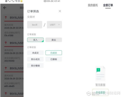 据了解,2020年5月7日,某币圈人士在火币网提现50枚BSV(单价206美元)到抹茶交易所,其中20枚(约3万元人民币)BSV换仓买成ETF的BSV 3L。