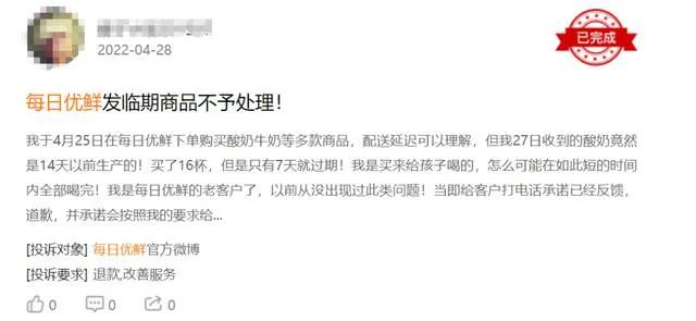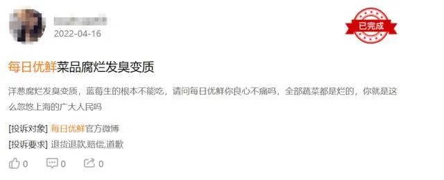 不仅如此,事实上不少消费者也曝光出在每日优鲜平台上购买到了有质量问题的商品。在投诉平台上,每日优鲜的相关投诉高达3101条,其中,有消费者投诉在平台上面买的粽子吃出异物、买到劣质羊肉卷、快过期的酸奶、洋葱腐烂发臭、甚至有的用户表示吃完后出现腹痛腹泻等问题……