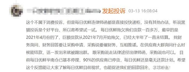 今年以来,每日优鲜还出现了因拖欠货款被供应商断货的事件。据相关报道,每日优鲜因拖欠2020年货款被供应商诉至法庭,最多的欠款金额接近千万。