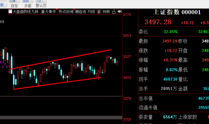 其实如果从日线级别来看沪指,它就是个震荡式,而且通道线很标准,不考虑小级别的话也很好操作,不跌破或者不突破就小仓位玩个股就好,走到上方通道线降一下仓位,走到下方通道线加一下仓位。