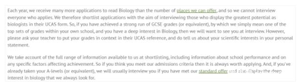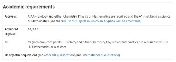 想申牛津生物学专业,需要达到怎么样的标化成绩呢?官网给出的信息如下: