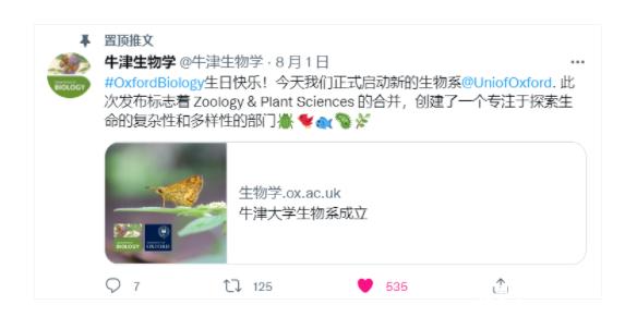 牛津大学这次新开的院系其实就是把原有的动物学和植物学进行了结合,称作生物系——Department of Biology。