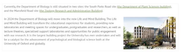 目前动物学和植物科学系还分属两座教学楼,预计在2024年共同搬进牛津大学的新教学楼Life and Minding