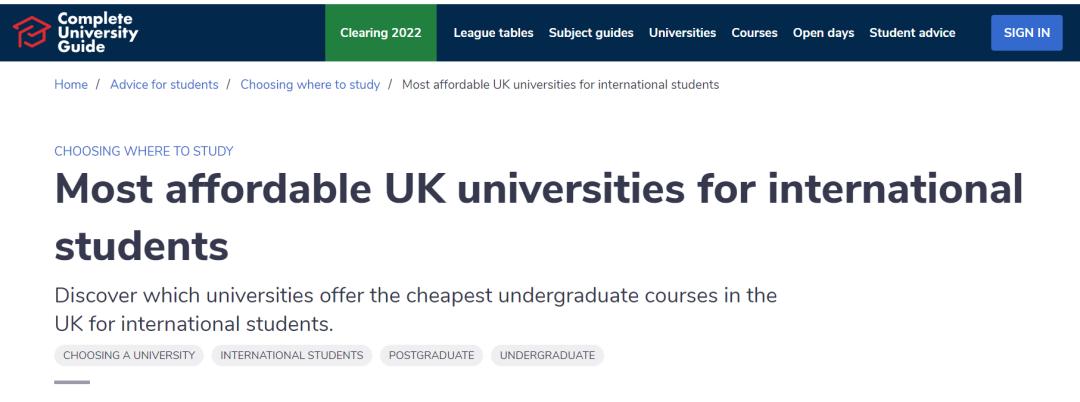 为此,英国《完全大学指南》曾发布过一个大学排名榜单,盘点对于国际本科生来说最划算的十所大学。下面,让我们一起来看看都有哪些学校吧~