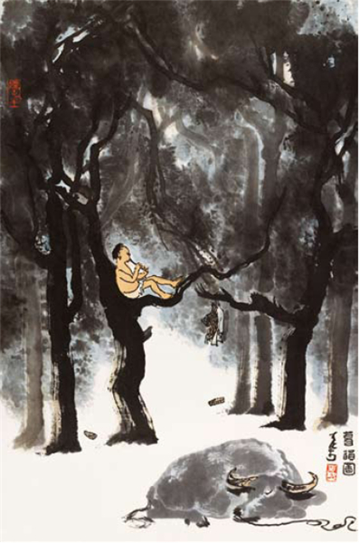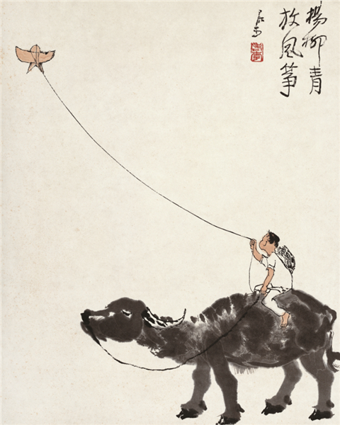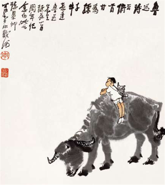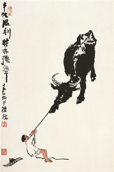 题款:牛性温驯,时亦强犟。可染作于桂林。