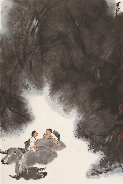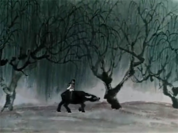 今天就把动画片《牧笛》中的场景和李可染笔下的牛一起欣赏,以此向我们的国画大师李可染先生致敬!