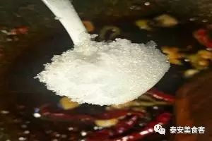 4:锅中热油,放一块火锅底料,少许郫县豆瓣酱小火炒出红油;