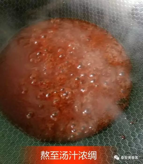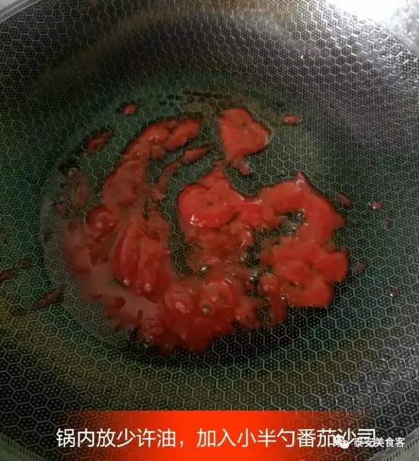 第七步、锅中下入油烧热,加入小半勺番茄沙司、白醋、白糖熬制浓稠