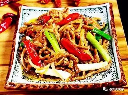 2.锅里留底油,或另起锅放油,放入泡椒、泡姜、大蒜炒香。放入泡萝卜丝炒出香味。加入肉丝,炒均匀入味。调入鸡粉和香醋炒匀。放葱段翻匀,即可。