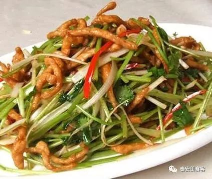 1.将猪通脊洗净切成丝。加入少许盐,一勺料酒,适量淀粉抓匀腌制15分钟。香菜洗净,摘去叶子,将香菜梗切成和肉丝长短差不多的段。干红椒用剪刀剪成丝。