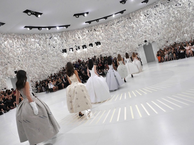 比利時設計師拉夫·西蒙(Raf Simons)用了超過 15 萬支蘭花裝飾了秀場的牆面,耀目的閃燈伴隨了主題為“美好年代”(Belle époque)的高定系列。