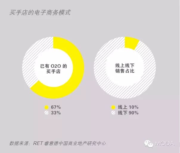 在買手店品牌中,設立電子商務平臺的已占了三分之二,其剩餘三分之一中也有一半以上的品牌正在建設網上商城。O2O 模式降低了買手店的實體經營成本,也有利於品牌在全管道的推廣,實現短期內以較低成本提升知名度。