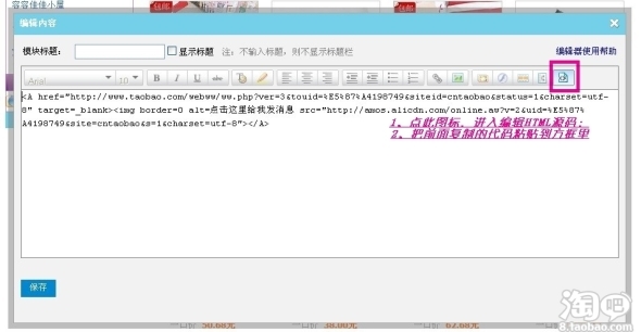 10,这时我们就可以看到我们的旺旺在线的标志了哈,很开心,终于出现了.保存后的效果图http://img03.taobaocdn.com/sns_album/i3/T1okB.XXtBXXb1upjX.jpg