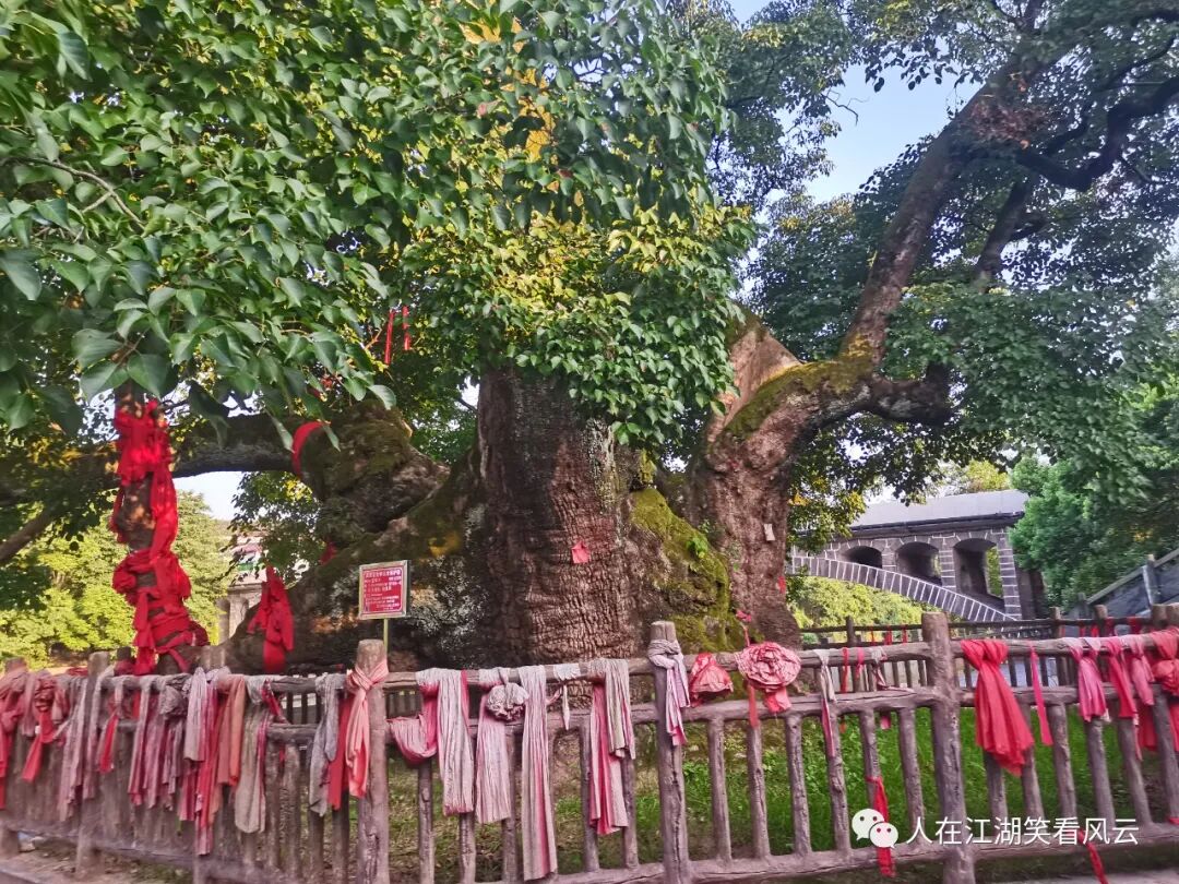 芷江有2200多年历史,建于公元前202年,在芷江民族文化村,还能见到当年栽下的重阳木,这个重阳木宛如我们四川常见的黄桷树,底部躯干粗大,然后四方生长,枝繁叶茂,从下方看,能够遮天蔽日。它的底部躯干已经被岁月侵蚀,但依旧用顽强的生命力见证岁月变迁。