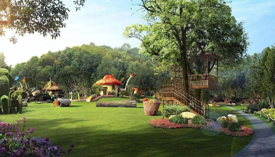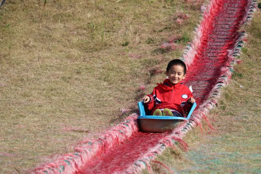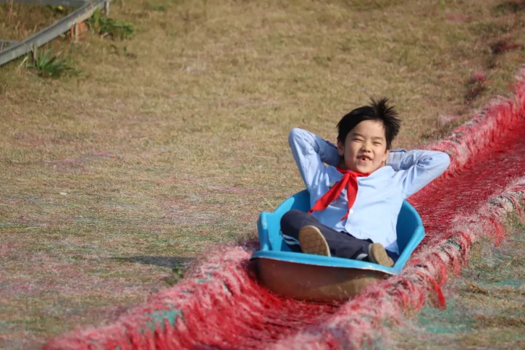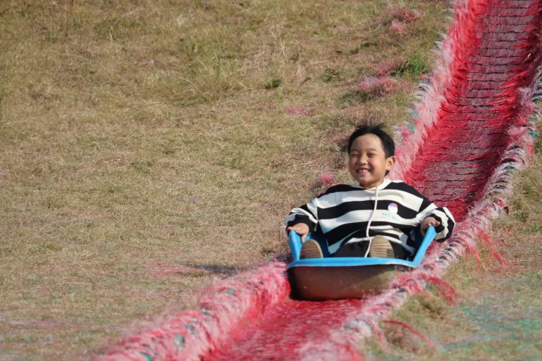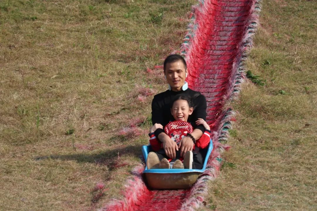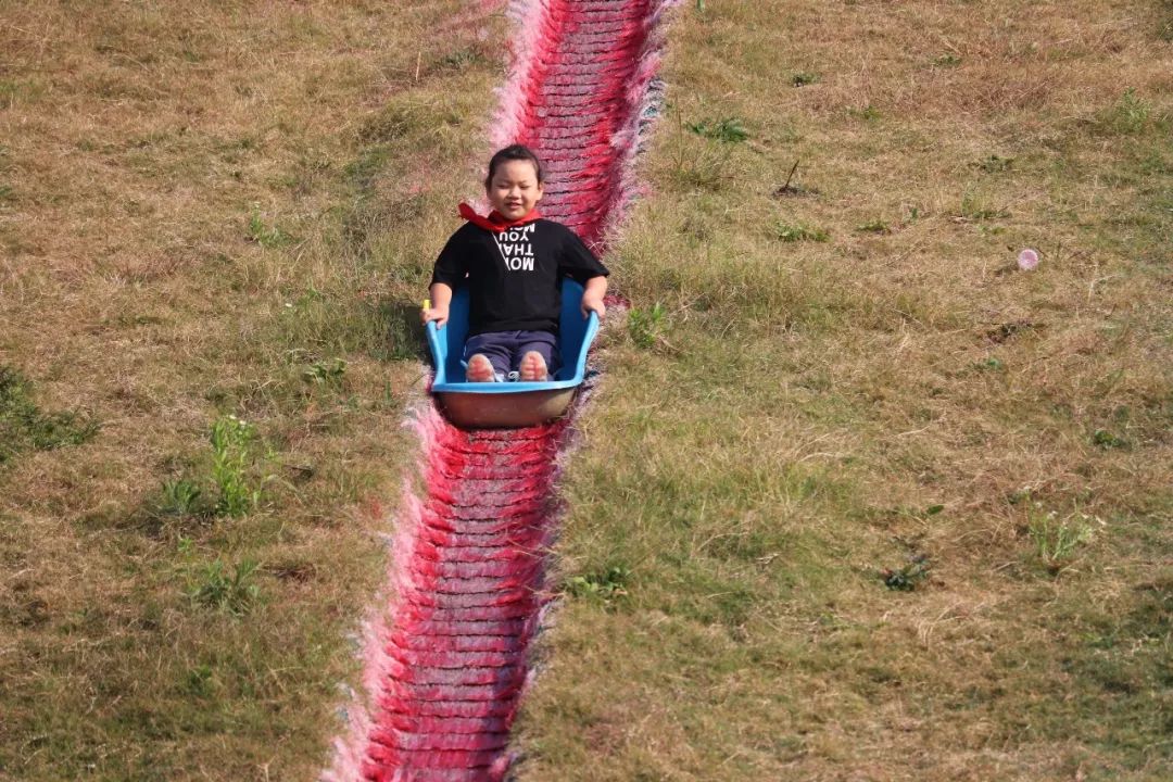 小朋友们和爸爸妈妈一起乘上园区的小火车,穿越整个原乡景区,美景尽收眼底。