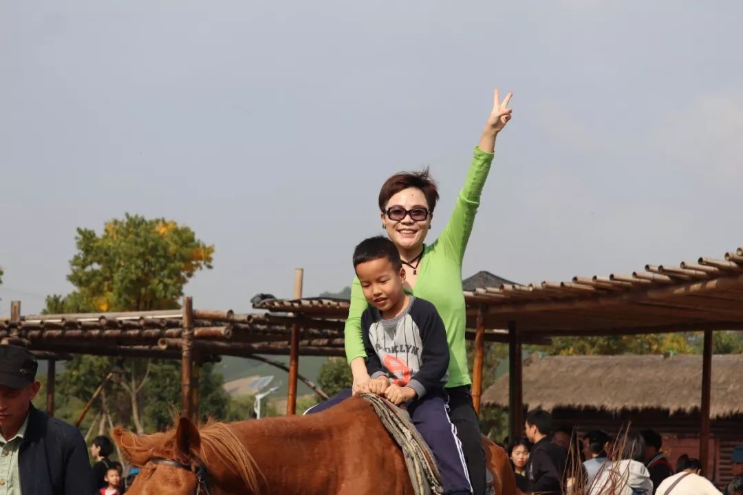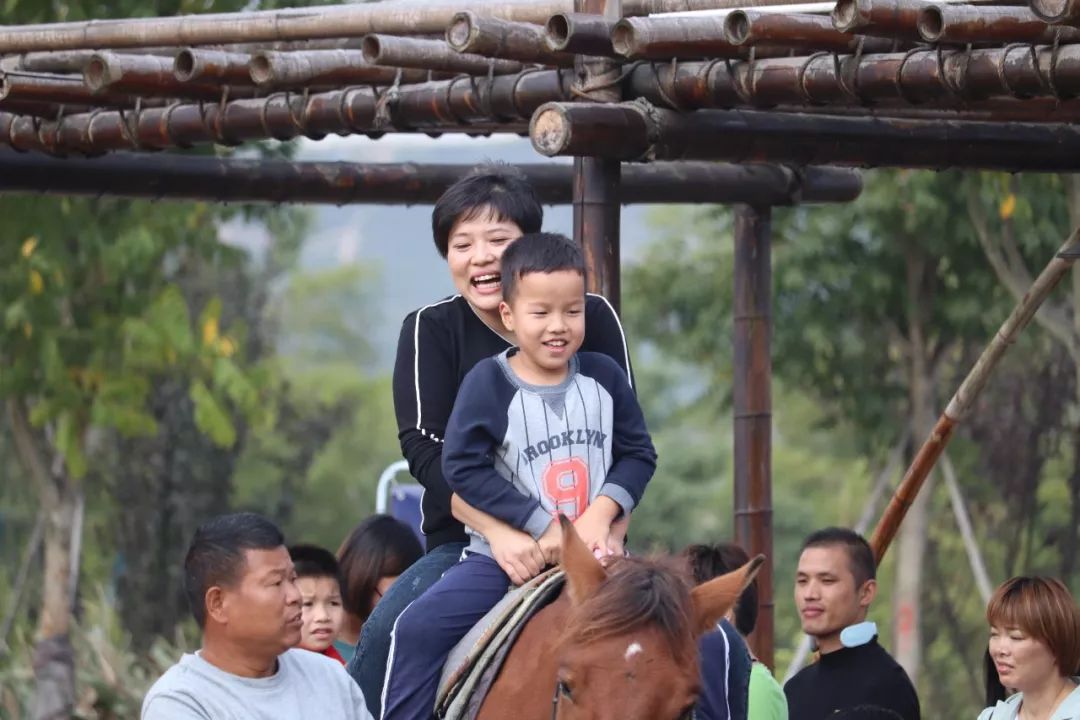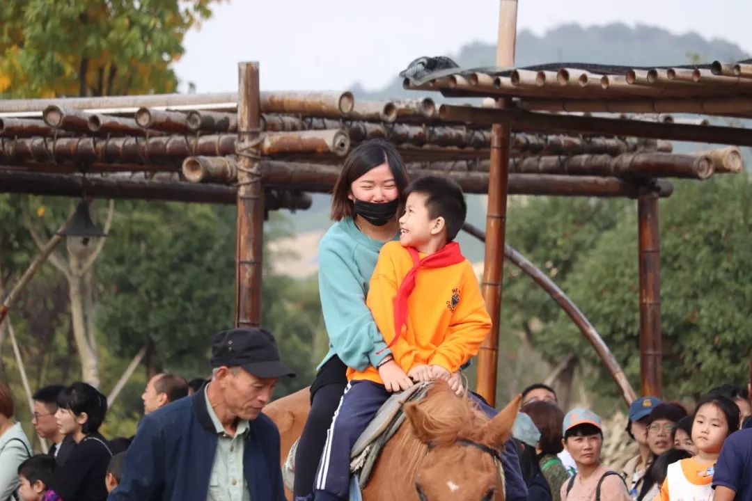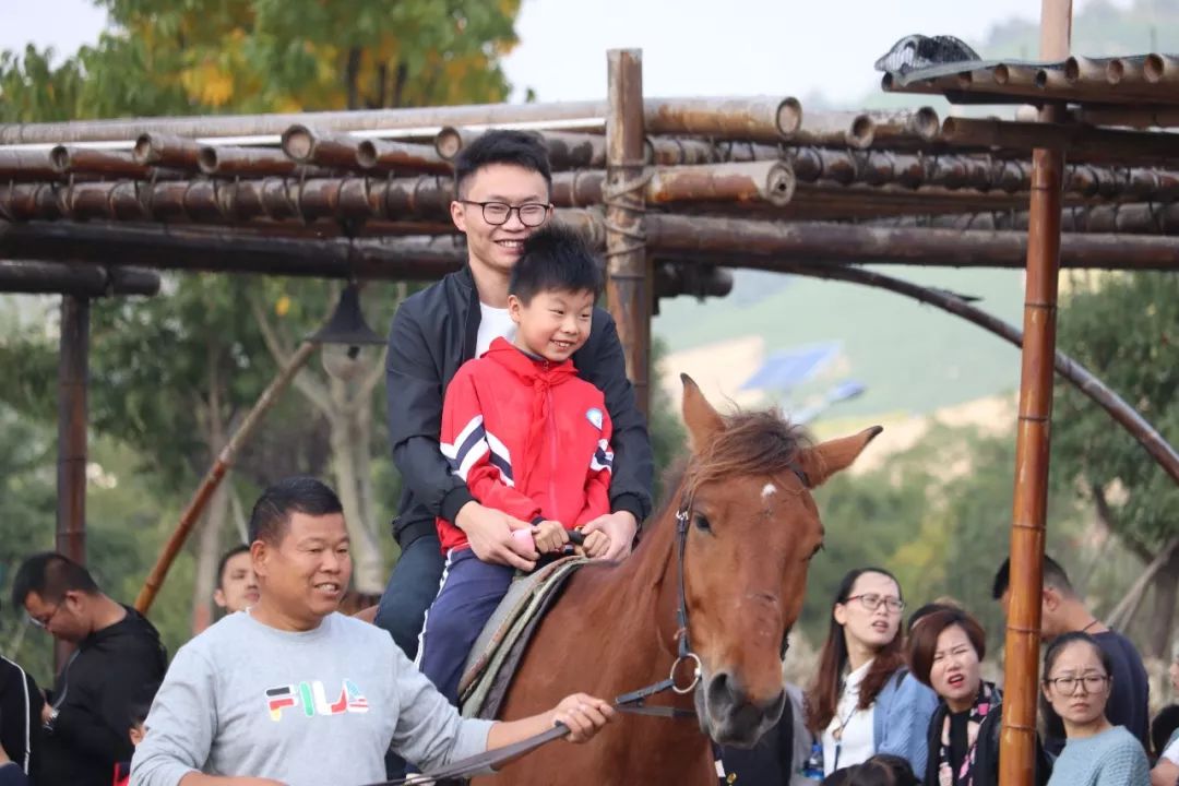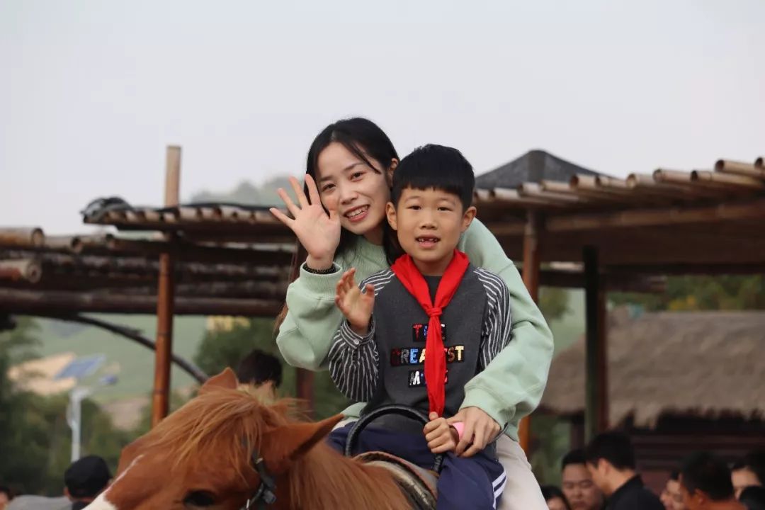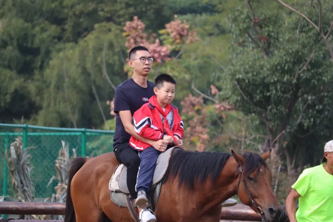 孩子们在嬉戏中亲近大自然,和爸爸妈妈骑上帅气的小马驹,笑容洋溢。