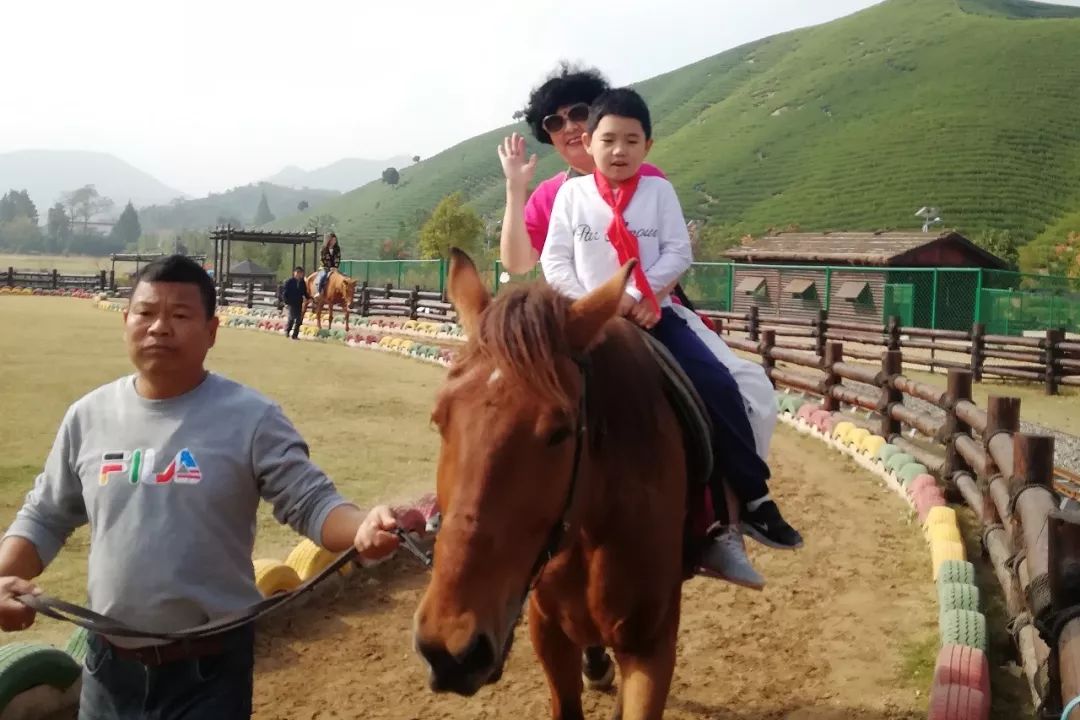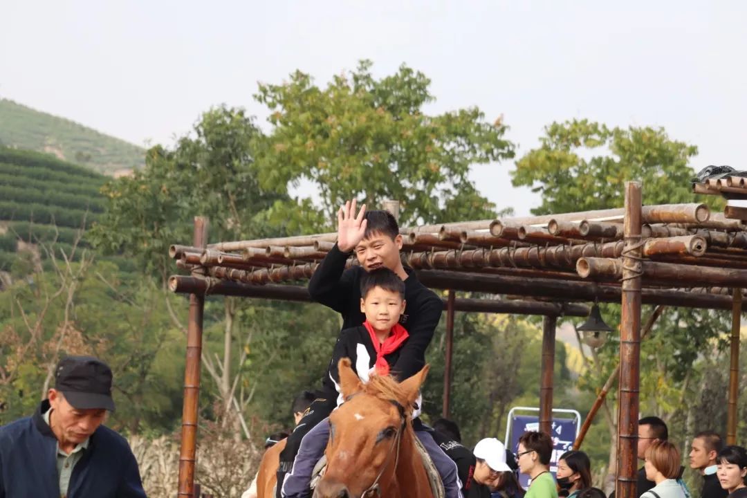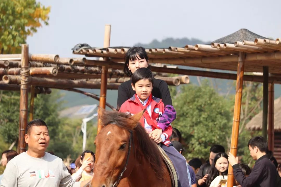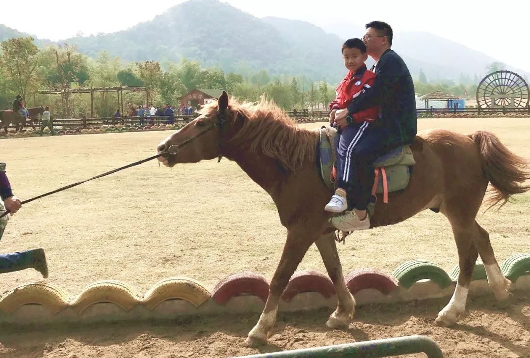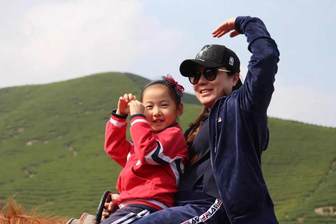 孩子们在嬉戏中亲近大自然,和爸爸妈妈骑上帅气的小马驹,笑容洋溢。