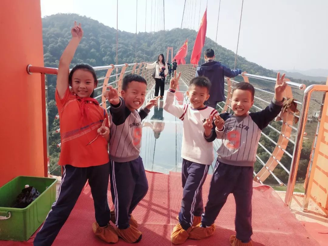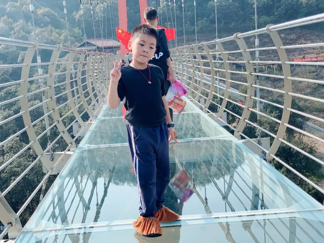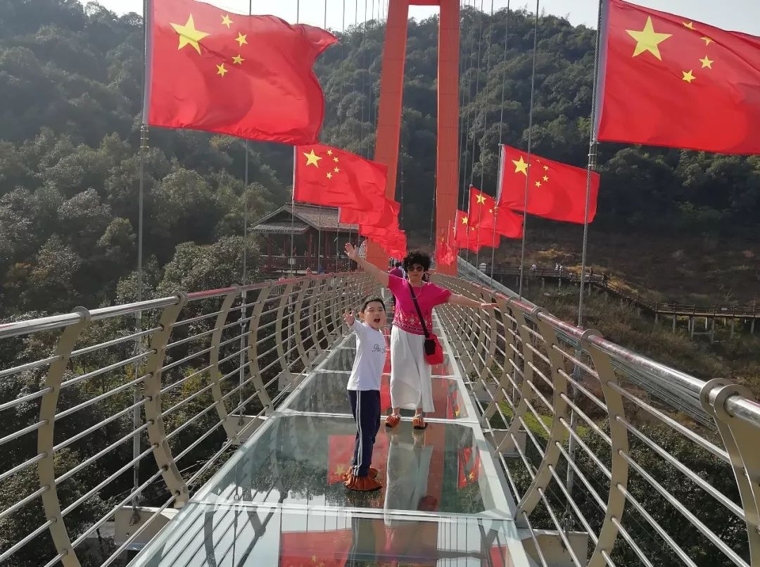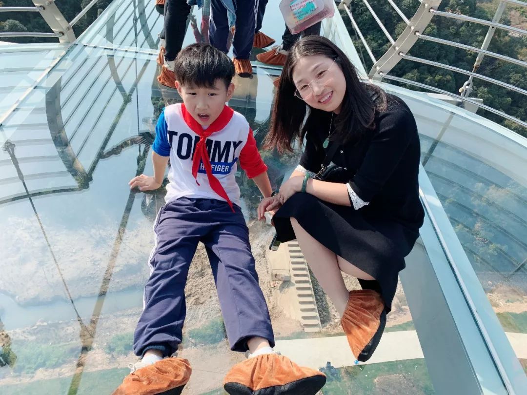一边欣赏美景,一边踩着木栈道向着玻璃滑道前进。一路风景宜人,一路欢声笑语。