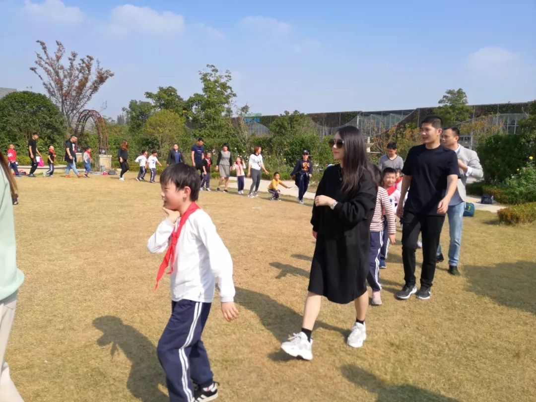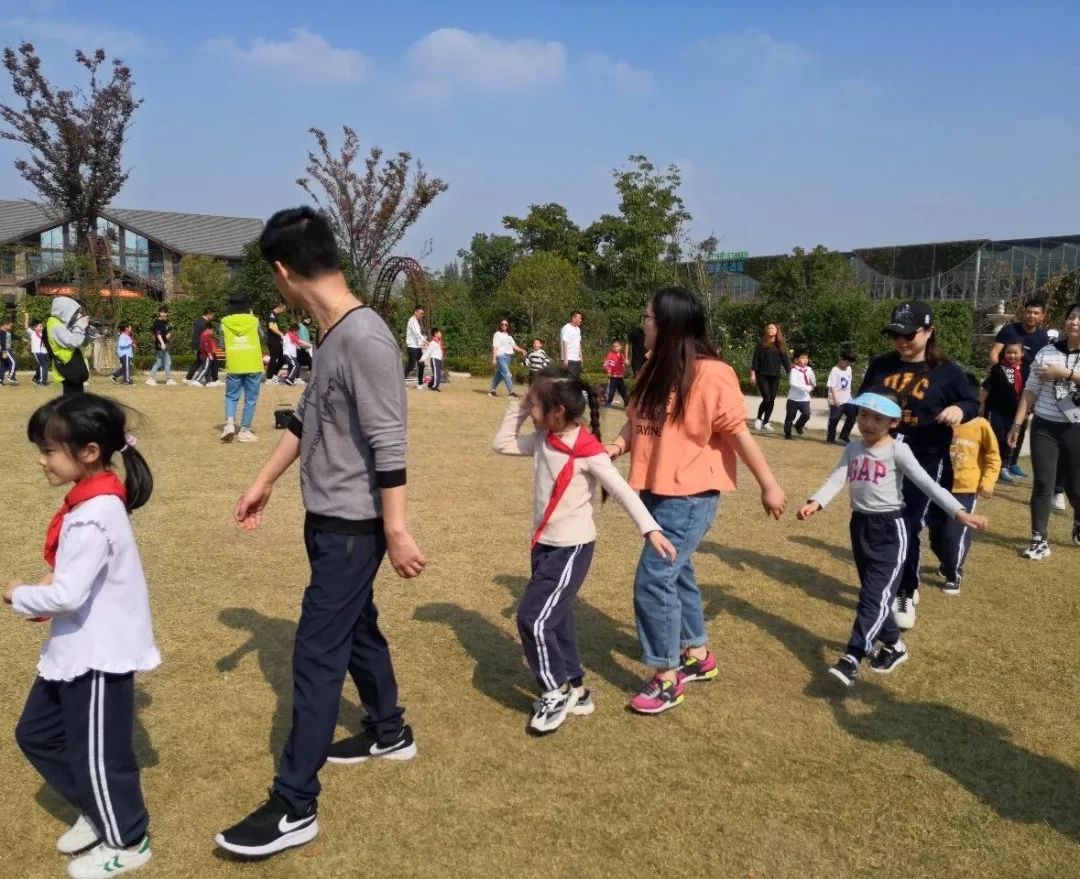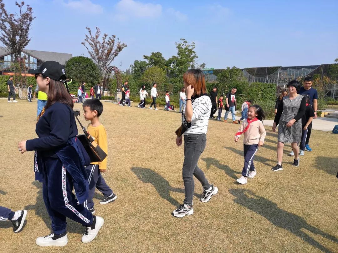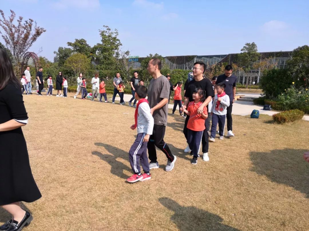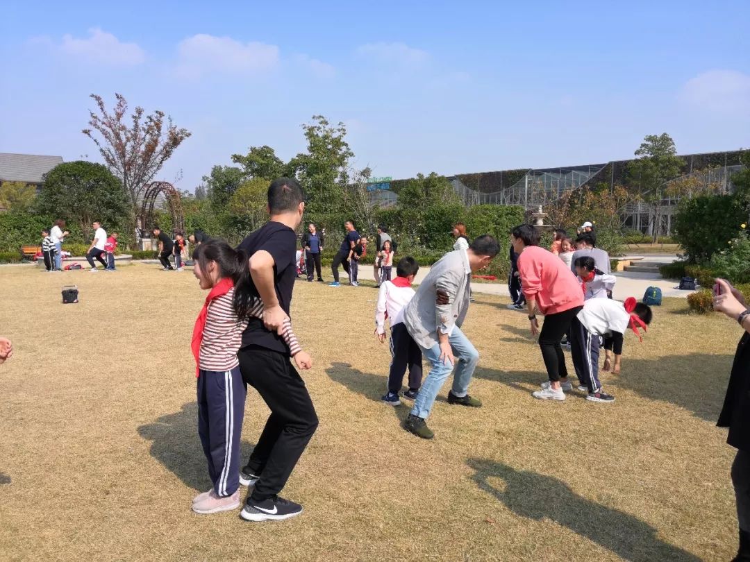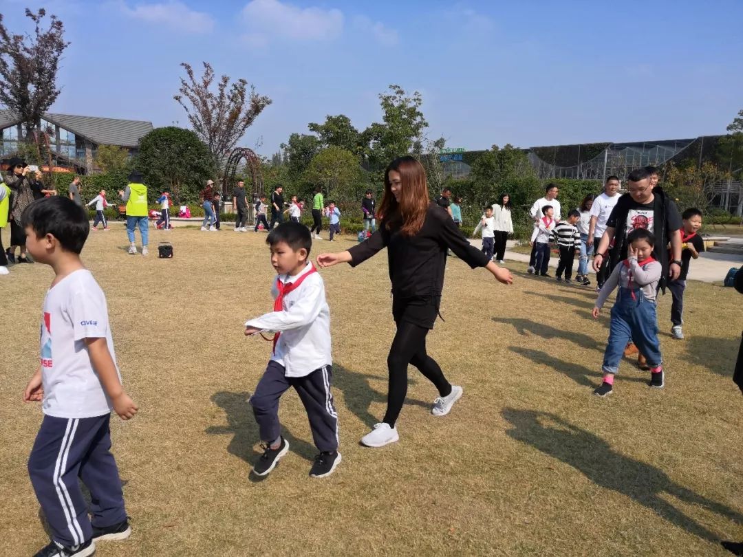 到达园区后,老师带领大家在绿色的草坪上组织亲子游戏,促进孩子们与家长之间的交流与互动,让父母体验陪孩子一起做游戏的快乐。