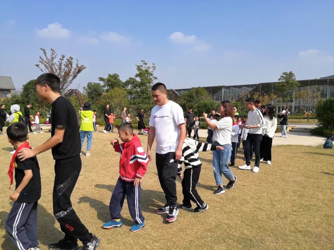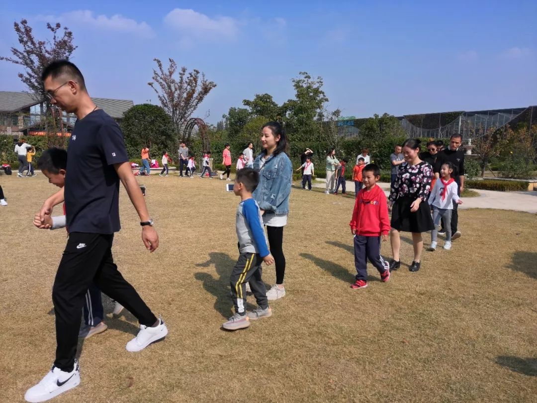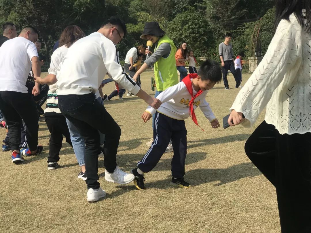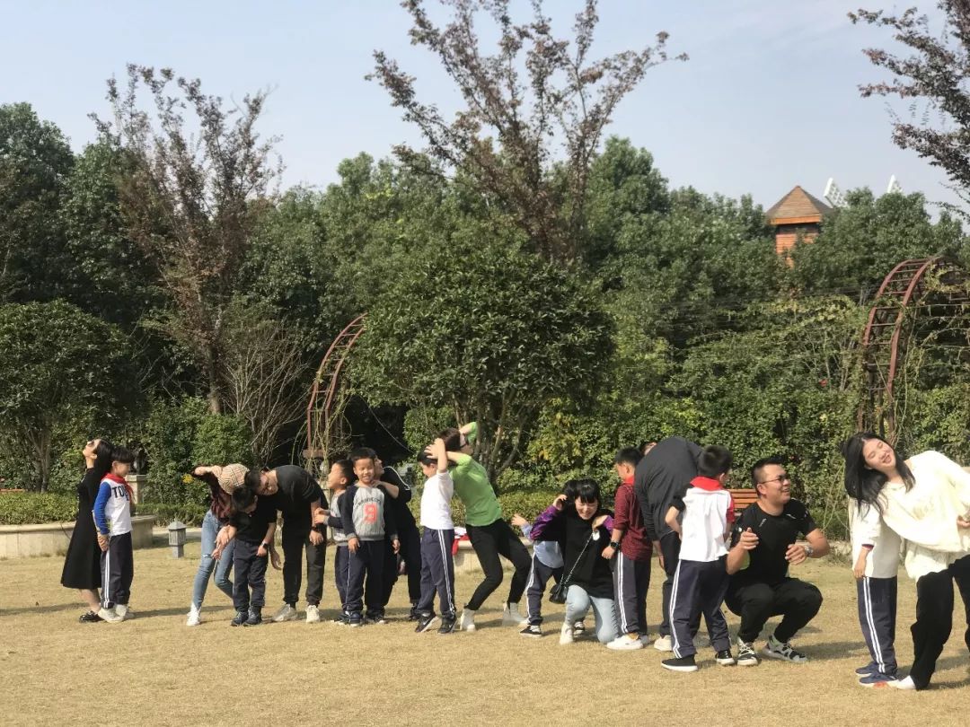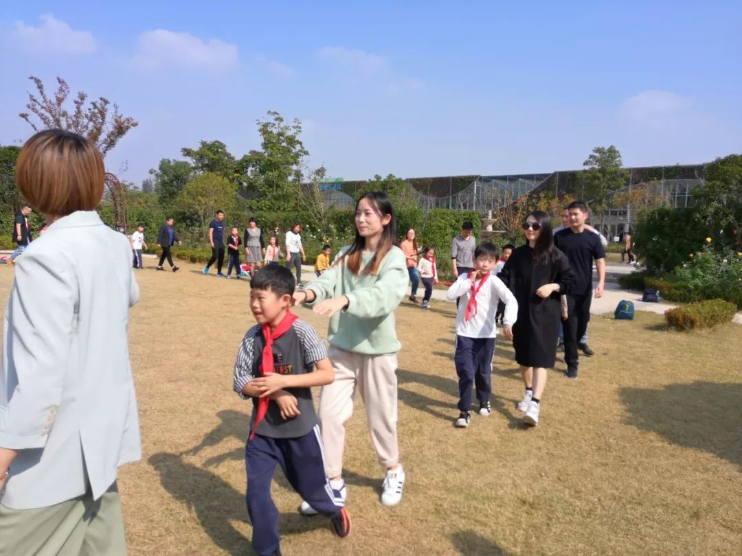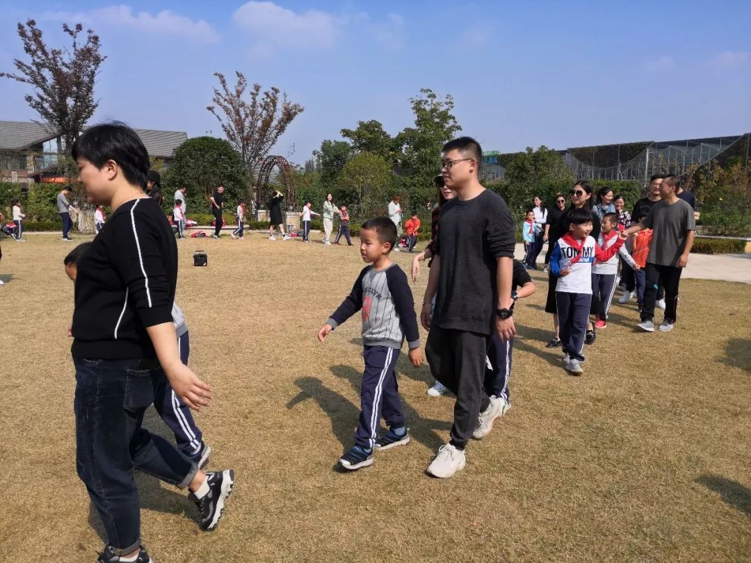 到达园区后,老师带领大家在绿色的草坪上组织亲子游戏,促进孩子们与家长之间的交流与互动,让父母体验陪孩子一起做游戏的快乐。
