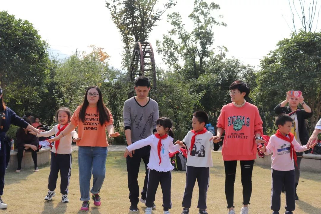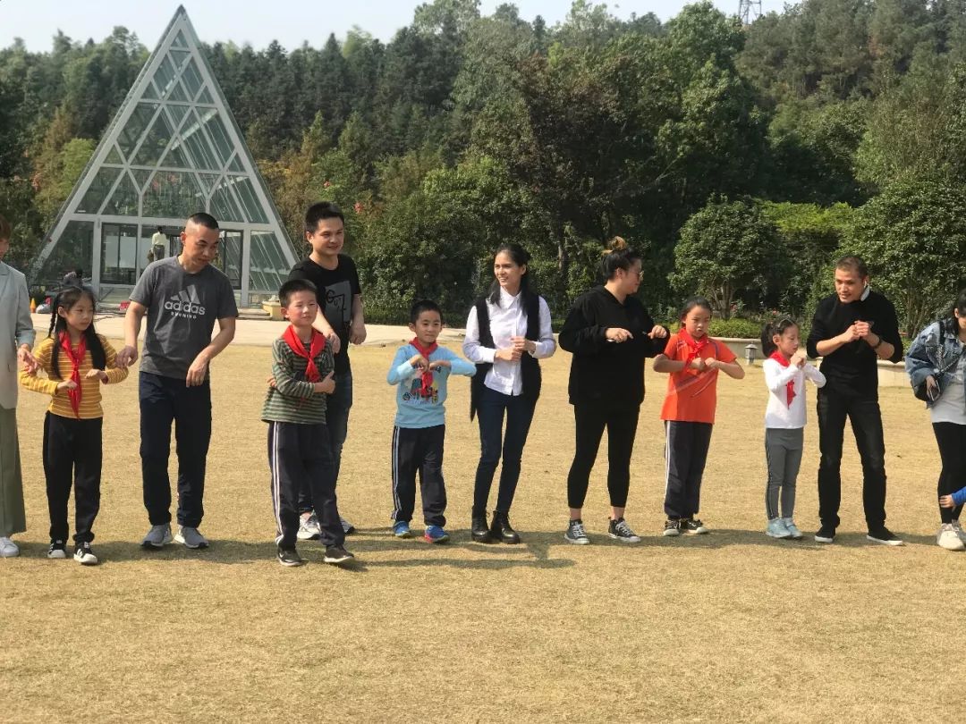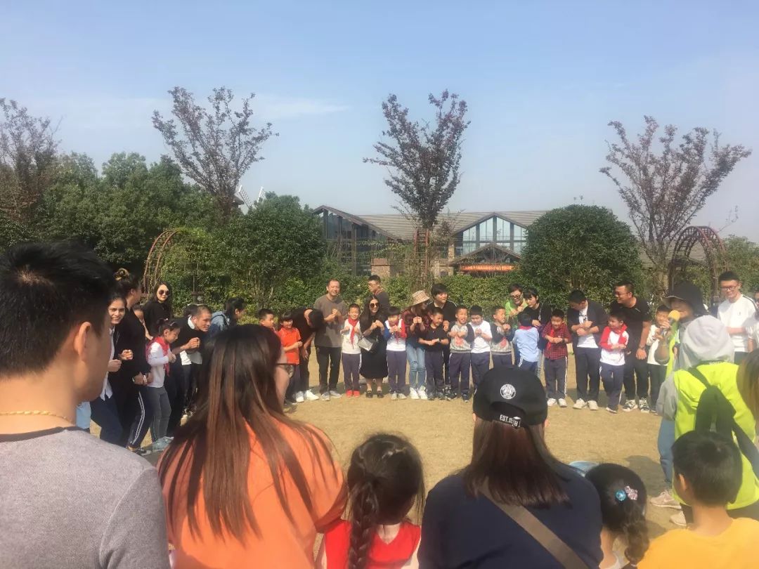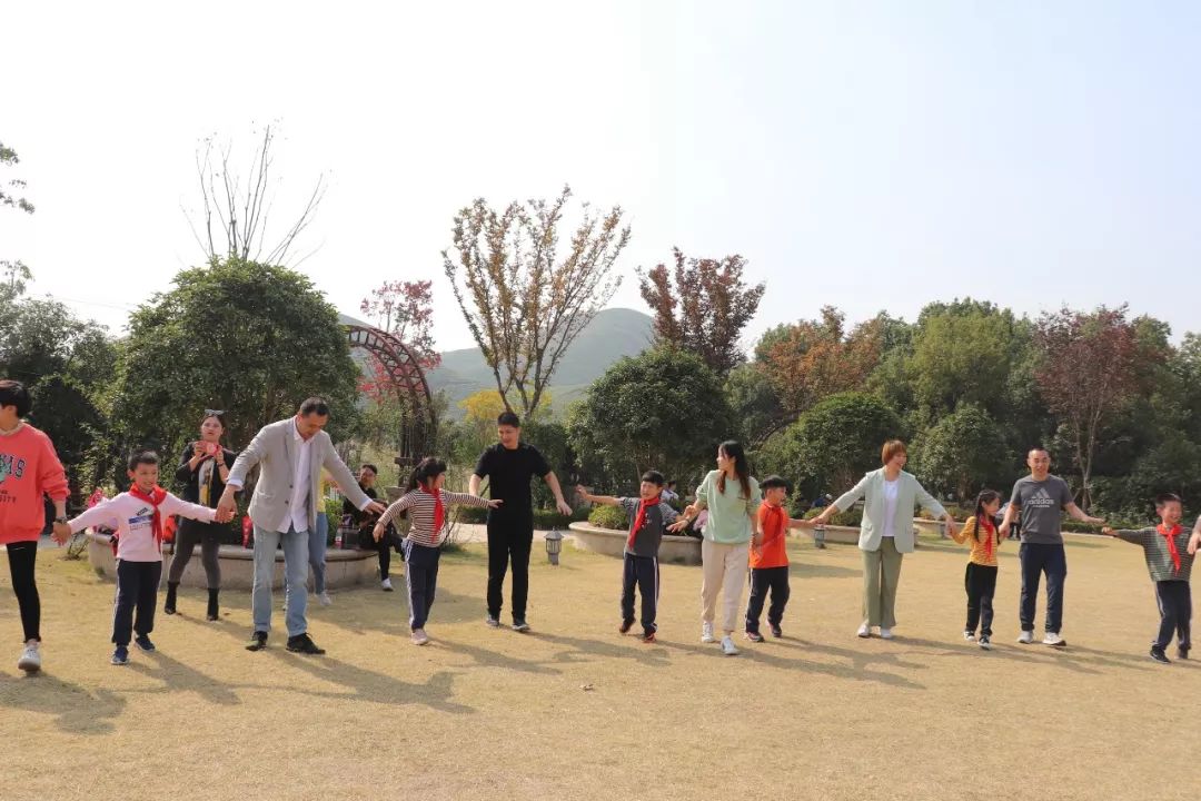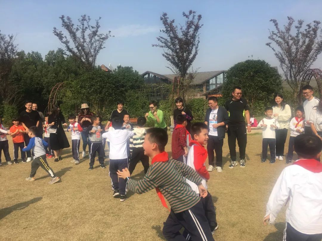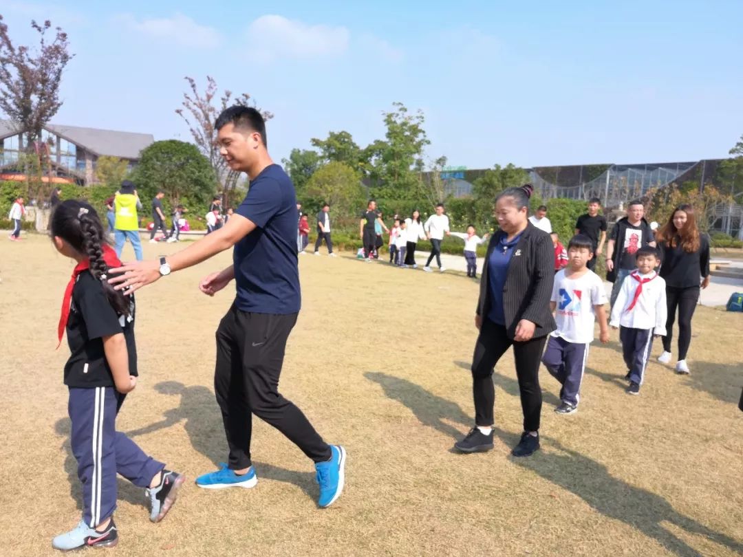 到达园区后,老师带领大家在绿色的草坪上组织亲子游戏,促进孩子们与家长之间的交流与互动,让父母体验陪孩子一起做游戏的快乐。